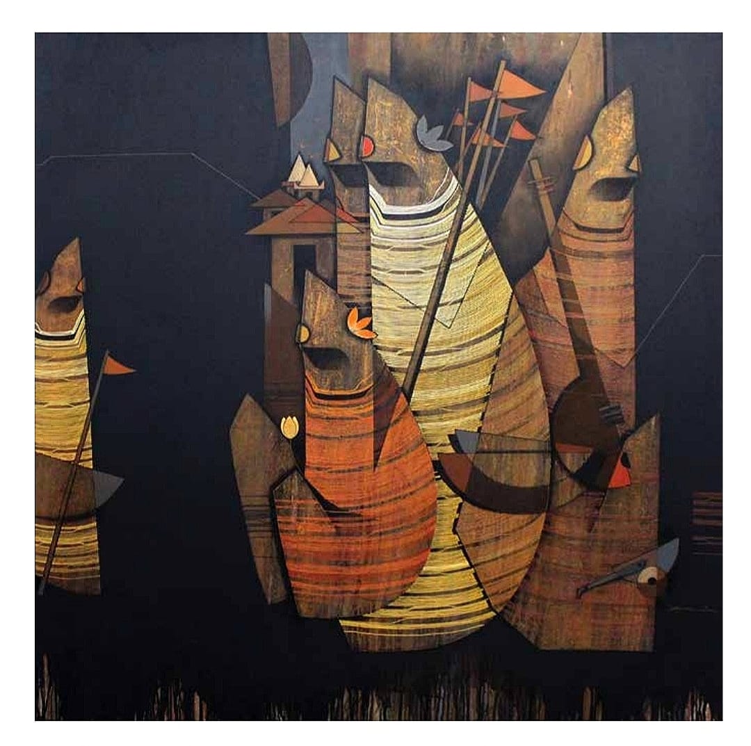 Painting Rural Contemporary artworks, Rahul spent most of his childhood and adolescence with The Family in the farms.Rahul Dangat is a visual artist, who earned his G.D Art Painting from Bharti Kala Mahavidyalaya, Pune and BFA Painting from M.M.K College of Visual Art, Gulbarga. Rahul spent most of his childhood and adolescence in the farms. The rustic and earthy colours filled his life in the early years and now adorn his canvas. Lines are an important part of Rahul’s paintings which also create the signature texture and effect in his paintings. A combination of warm and cool hues along with the intersecting vertical and horizontal lines, bring a balance in his painting. His paintings bring the mild fragrance of soil from the country side and have the soothing effect of first rains on the mind. He started his career in late 90s and over the years, he has earned awards and have exhibited his work in many solo and group shows.