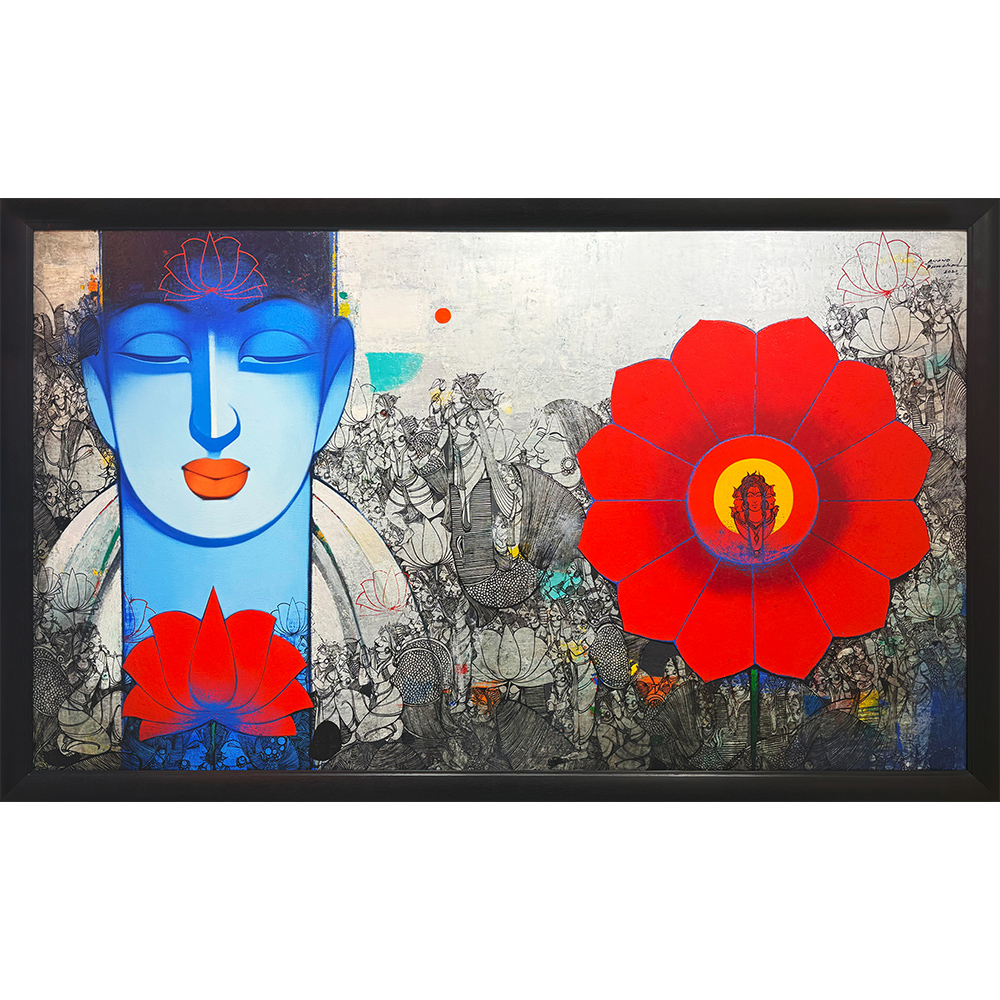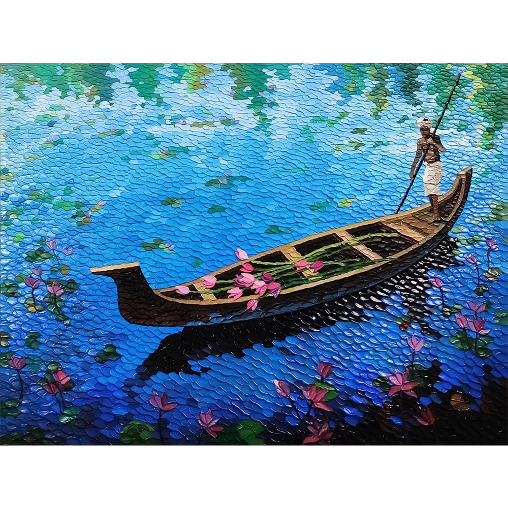 36 x 48 inchesMr. Ganesh Mhatre, an Indian artist hailing from the picturesque Konkan region, has seamlessly woven this water lillies beauty of his surroundings into his remarkable… -