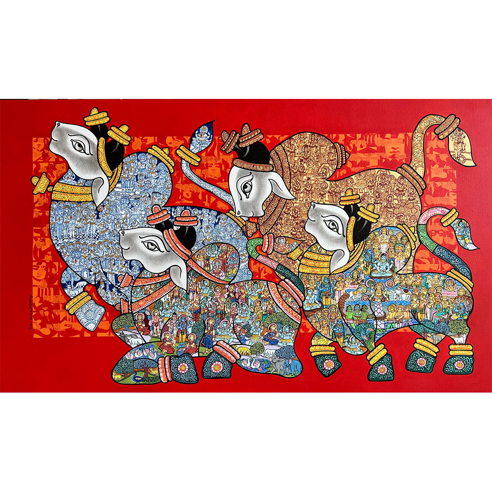 ₹78,000.00 30 x 32 inchesParshuram’s Hometown series is a tale of village men with their cattle. The artist has absolutely created magic with his artwork. Its mesmerizing and can… -