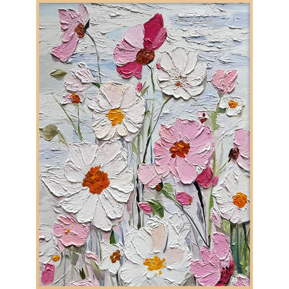 ₹48,000.00 30 x 30 inches'Whispers of Earthlight. is a gentle ode to nature's quiet strength. Set in rich tones of moss, clay, and sunlit cream, the blooms emerge softly… -