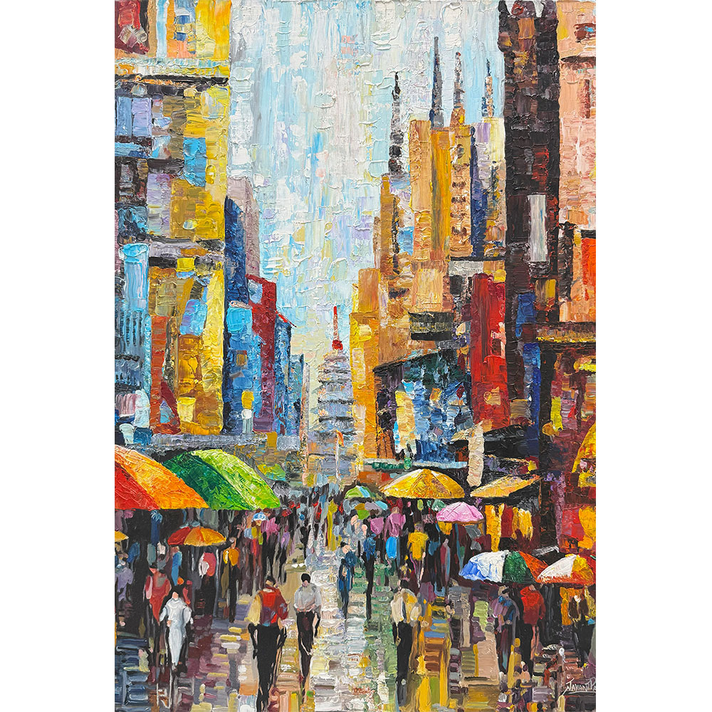 24 x 36 inchesPrashant Kulkarni’s vibrant canvases capture the rhythm of Indian bazaars, where bustling streets come alive in layers of light, shade, and color. His dynamic strokes… -